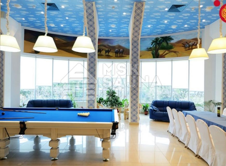 Место просто отличное для людей которые любят отдыхать с шиком. Огромнейший зал в котором расположен бильярд и вместительный стол с удобными креслами. Все выполнено в арабском, изысканном стиле. Просторный номер для отдыха. Турецкая парилка просто замечательная и правильная. Советую посетить это место.
