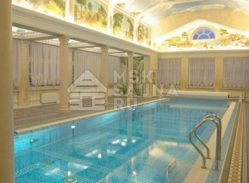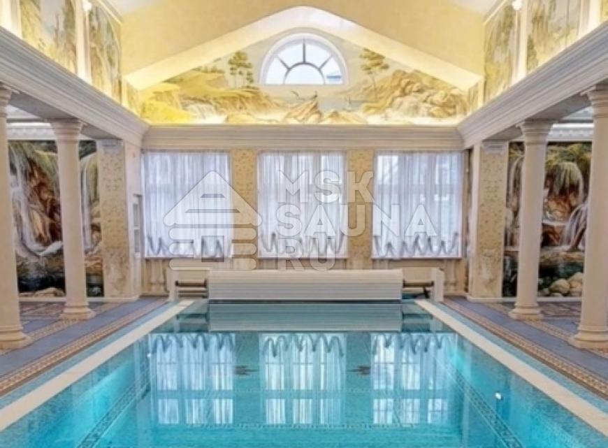 - бассейн 17х5 метров с подогревом, подсветкой и водопадом;