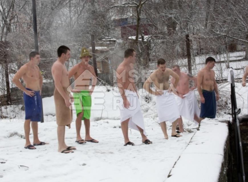 - купель, природный водоём (зимой - прорубь);