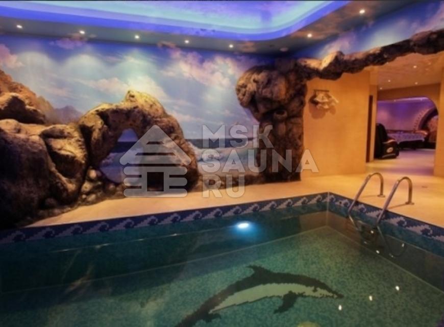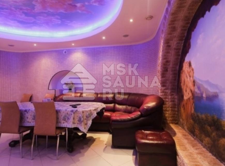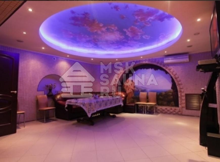Интерьеры сауны отличаются красотой и великолепии: в аква-зоне вы сразу увидите красиво обустроенный бассейн, который оформлен камнями – такое ощущение, что вы находитесь в морской лагуне. Красивая подсветка, профессиональная чистка воды позволят вам по-настоящему наслаждаться приятными мгновениями и проводить время с комфортом. Гостиная также оформлена очень красиво: особенно привлекают внимание потолки, которые сделаны с эффектом неба. Кожаная мебель лаконично дополняет голубые интерьеры и выглядит просто великолепно! Если вы хотите насладиться приятными моментами расслабления, то вам обязательно стоит приехать в расслабляющую сауну, которая заключила в себе все этапы расслабляющего отдыха.