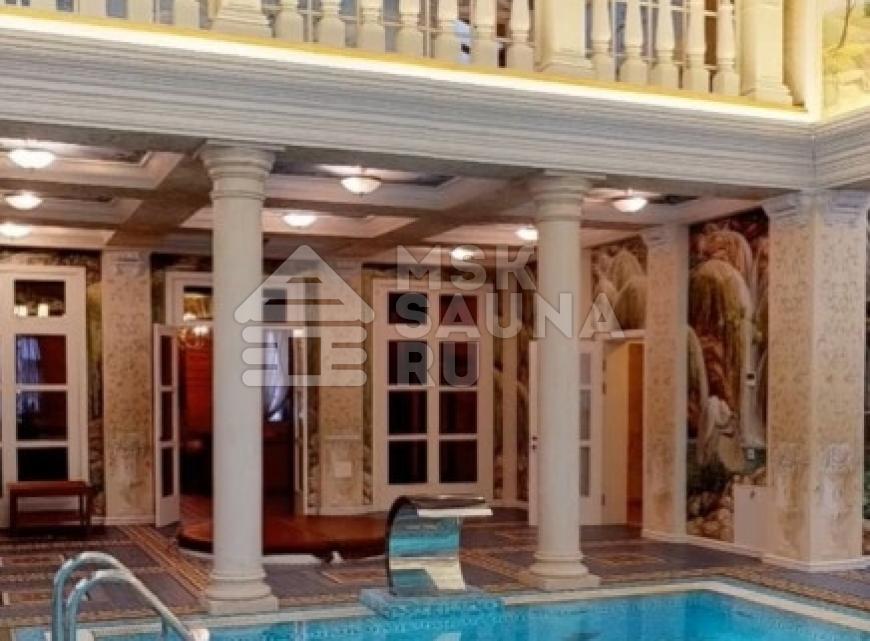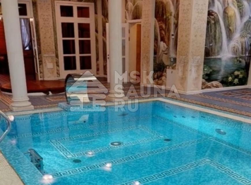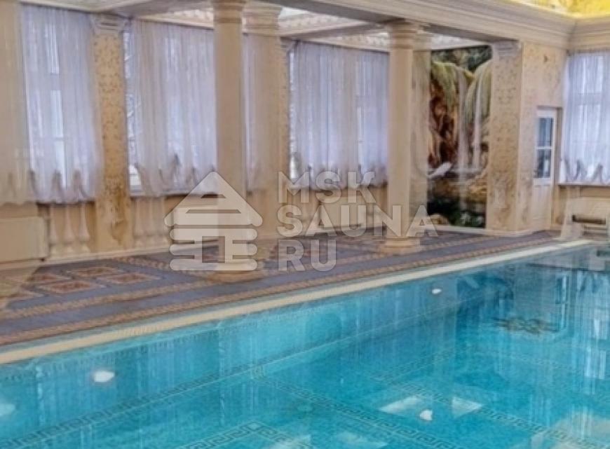 - бассейн 17х5 метров с подогревом, подсветкой и водопадом;